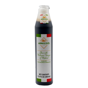 Arrezzio glaze with balsamic has a syrupy consistency that is ideal for decorating plates or for use with desserts. The syrup comes in durable plastic bottles that hold up well in busy kitchens.