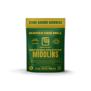 Marsh Hen Mill's Carolina Gold Rice Middlins consist of broken and smaller pieces of their Carolina Gold Rice that are produced during hulling and processing. Traditionally, middlins have been used in dishes such as purloo, and various "bogs". They have all the flavor and pedigree of Carolina Gold Rice, but cook a little quicker and are favored for recipes where they will be incorporated more than being served as a stand alone side.