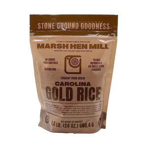 Marsh Hen Mill's Carolina Gold Rice gets its name from the beautiful golden hue in the field right before harvest. It is known as the grandfather of long grain rice in the Americas. This historic rice has exceptional aroma, flavor and texture. It has a subtle nutty almond and floral aromas and flavors as well as a starch structure that makes it uniquely prized by home cooks and chefs alike.