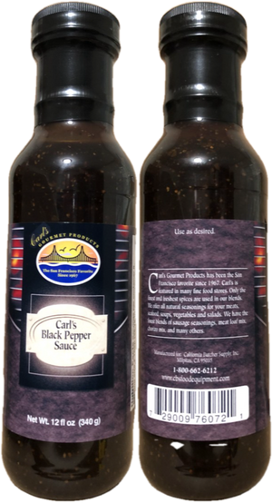Carl's Gourmet Products have been the San Francisco favorite since 1967. Carl's is featured in many fine food stores, and this Black Pepper Sauce & Marinade is a favorite of many butcher shops and small grocers.