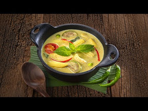 Ingredients: Coconut Milk 190g [Coconut extract (Coconut, Water) 37.00%, Water], Green curry paste 70g (Green Chilli 27.60%, Garlic, Lemongrass 13.00%, Shallots, Salt, Galangal Roots, Sunflower Oil, Coriander Leaves, Coriander Seeds, Coconut Sugar, Kaffir Lime Peel, Coriander Roots, Cumin Seeds, Turmeric, Lime Juice), Coconut Sugar 7g, Dried Red Chilli 1g, Kaffir Lime Leaves 1g.